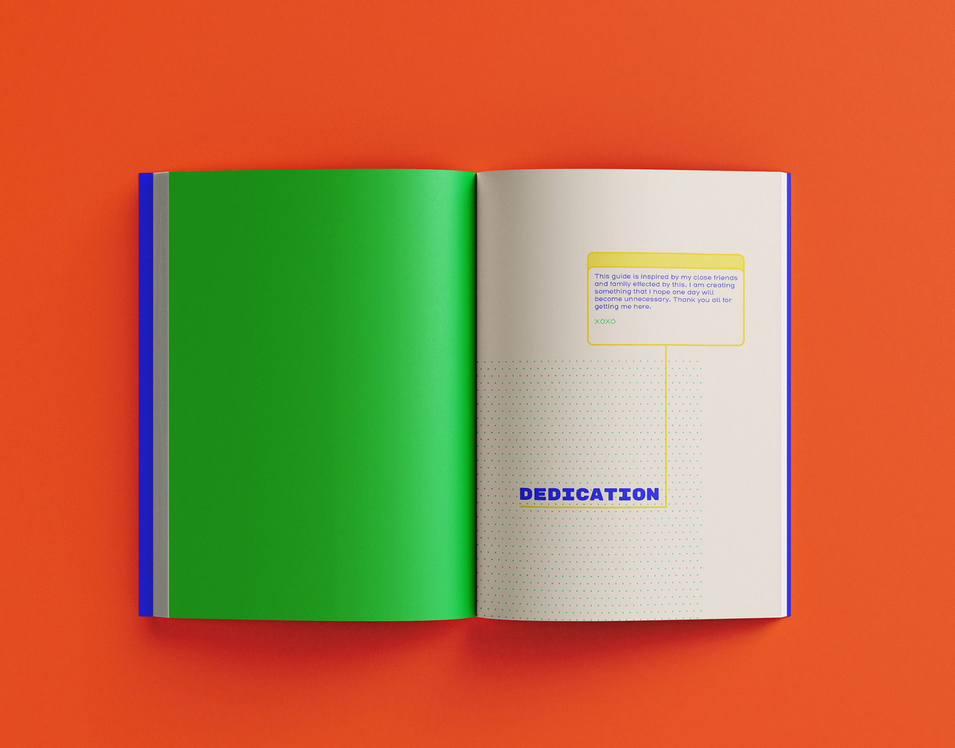 What inspired the look and feel of this book was a straight-forward, manual vibe, but with a bit of a more engaging, fun twist on an already serious topic. Bright colors, bold fonts, and varying lines and patterns gave this nearly stark canvas some character.